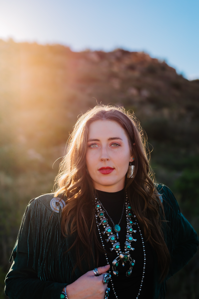 I am a self-taught silversmith with a love for sterling silver and turquoise jewelry (new and old), and good, vintage finds. I started this trade in 2021, after growing my collection for a few years and finally deciding to try my hand at growing it with pieces made by me. It has been so much fun to create pieces that get so much love! My favorite thing is sitting in the shop on calm, early mornings with a cup of coffee and my sweet pups, Winnie and Bee, planning out each piece and its individuality. There’s nothing like seeing the finished product come together, especially once someone has it styled on!