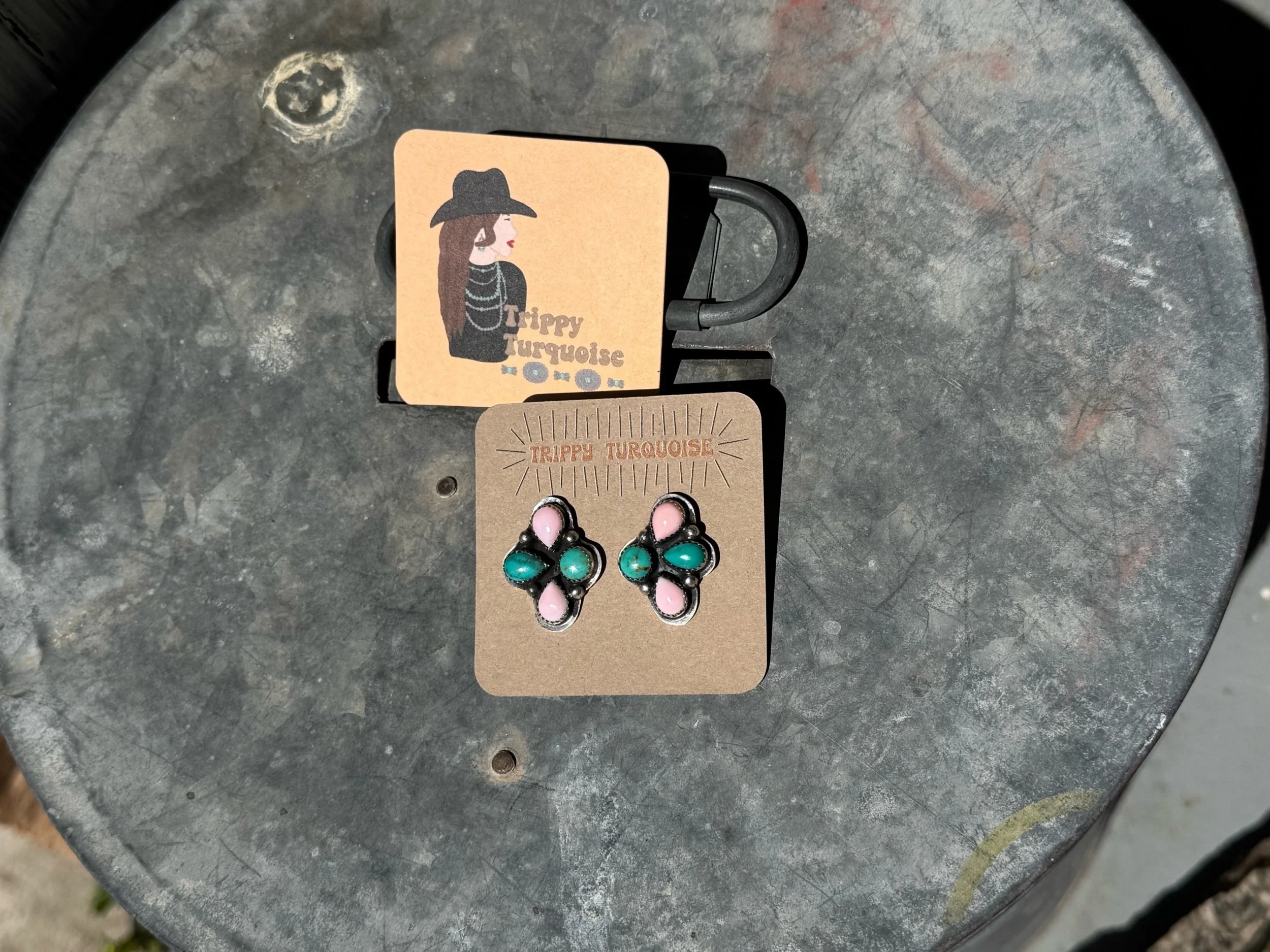 Image 1 of 1 TT Sterling Silver Pink conch/turquoise cluster earrings $180.00 TT handmade sterling Silver Pink conch/turquoise cluster earrings, 1” tall Add To Cart Added! TT handmade sterling Silver Pink conch/turquoise cluster earrings, 1” tall