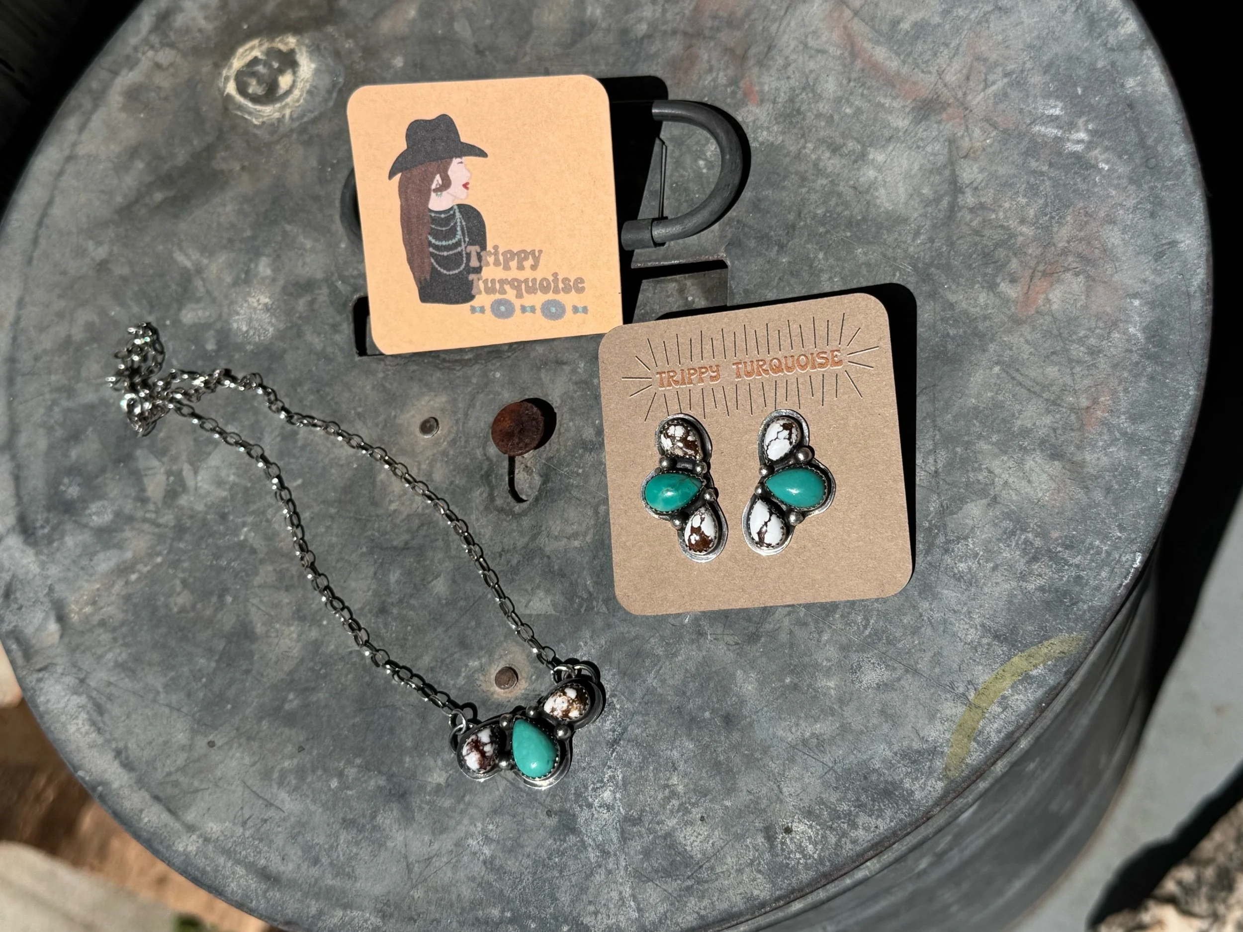 Image 1 of 1 TT sterling silver wild horse/turquoise 16” necklace and earring set $350.00 sold out TT handmade Sterling silver Wild horse/ turquoise necklace/earring set Sold Out Added! TT handmade Sterling silver Wild horse/ turquoise necklace/earring set