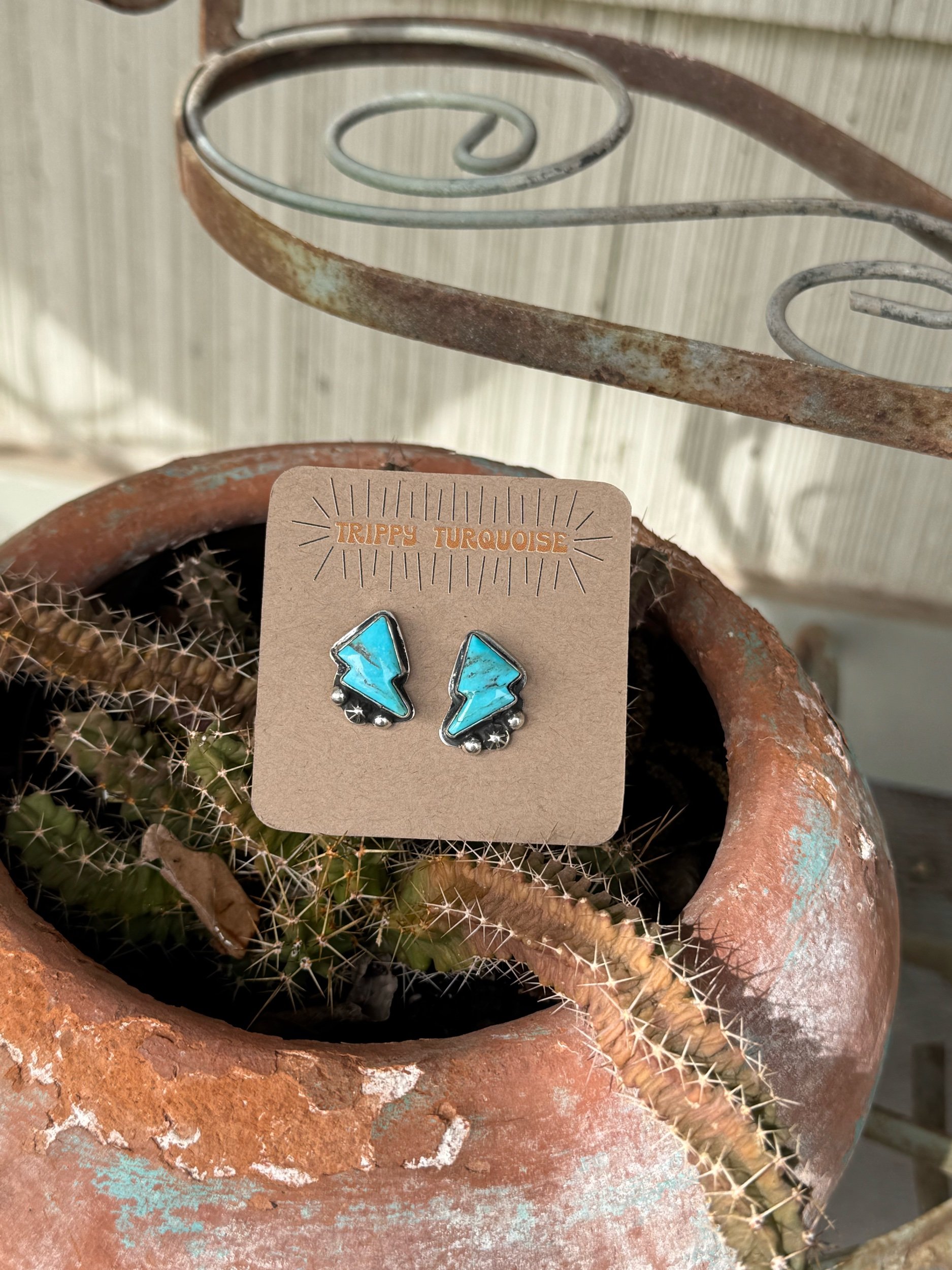 Image 1 of 1 TT made kingman lightning bolt earrings $175.00 A fun every day pair of earrings made by myself! Add To Cart Added! A fun every day pair of earrings made by myself!