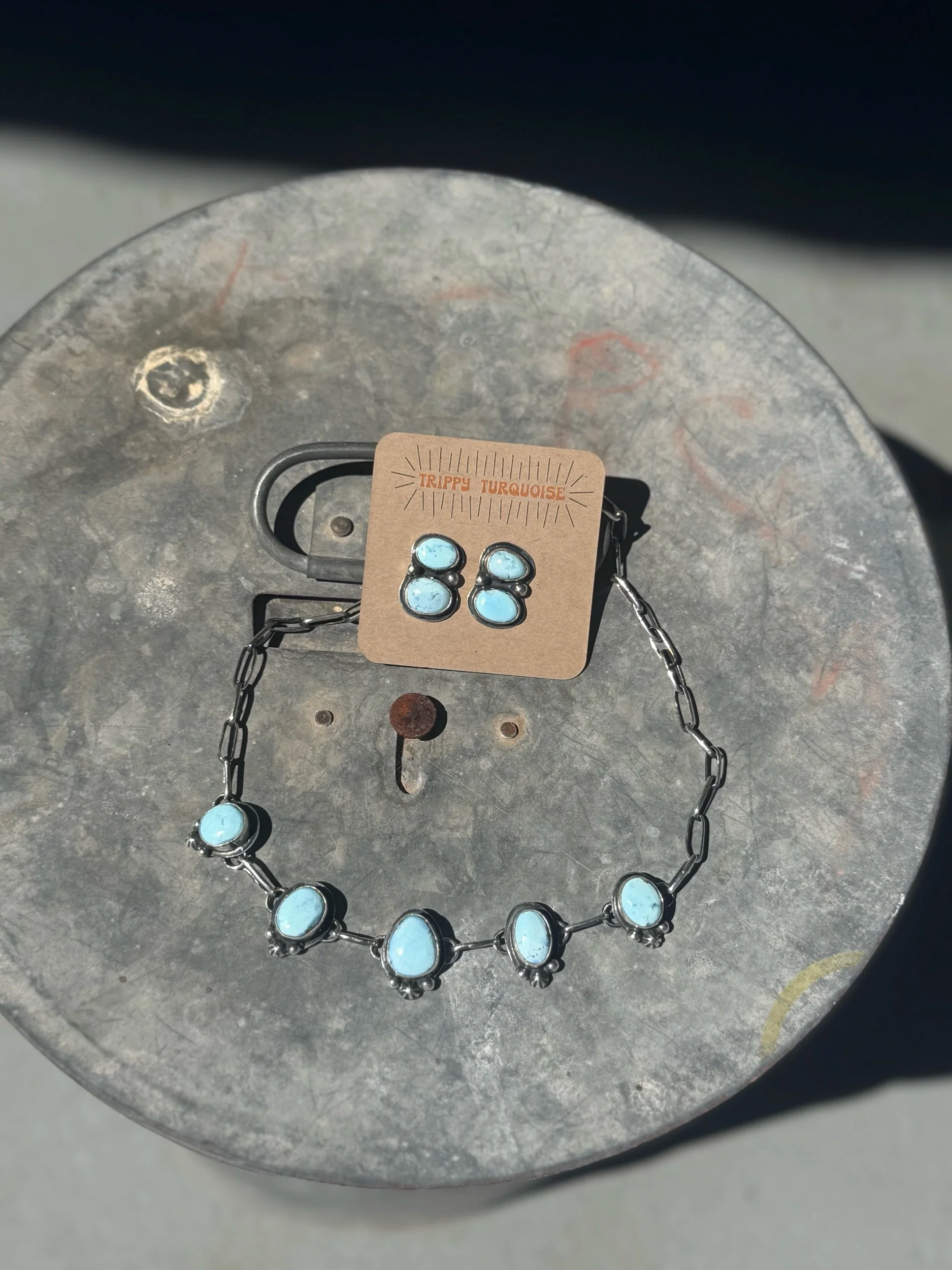 TT handmade Sterling silver and golden hills turquoise choker 18” necklace I would separate the necklace would be $550 before tax and the earrings would be $185, they’re discounted if sold as a set for $680